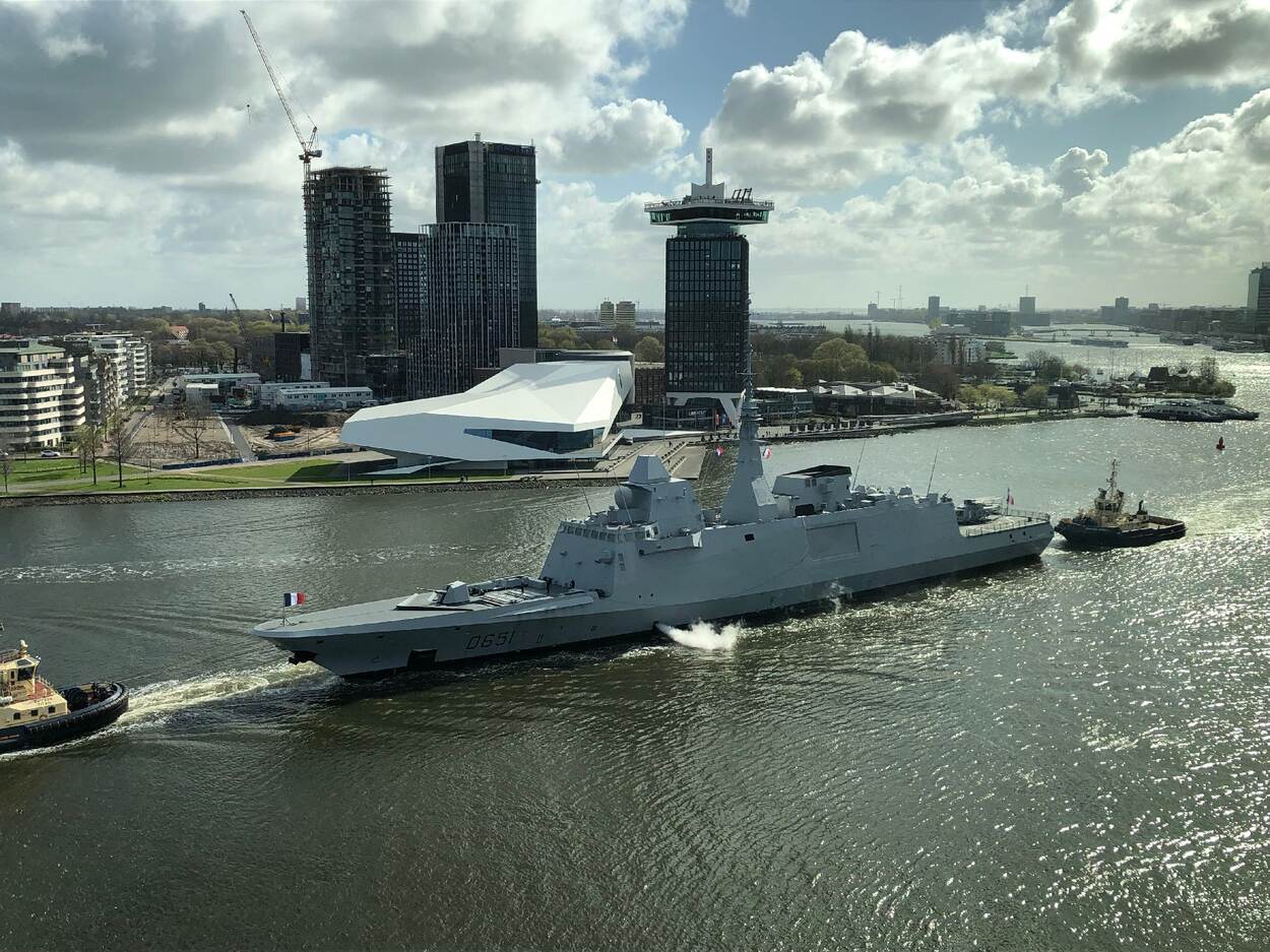 Oud-luchtmachter Jan Hulst moest dinsdagochtend waarschijnlijk twee keer met z’n ogen knipperen toen hij uit het raam van z'n kantoor keek op het IJdok in Amsterdam. Door de sluizen van IJmuiden voer het Franse fregat FS Normandië, met behulp van sleepboten, richting het IJ. Daar werden 21 saluutschoten afgegeven. Dat gebeurde voor het eerst in 47 jaar in ons land, tijdens een staatsbezoek van de Franse president Emmanuel Macron.