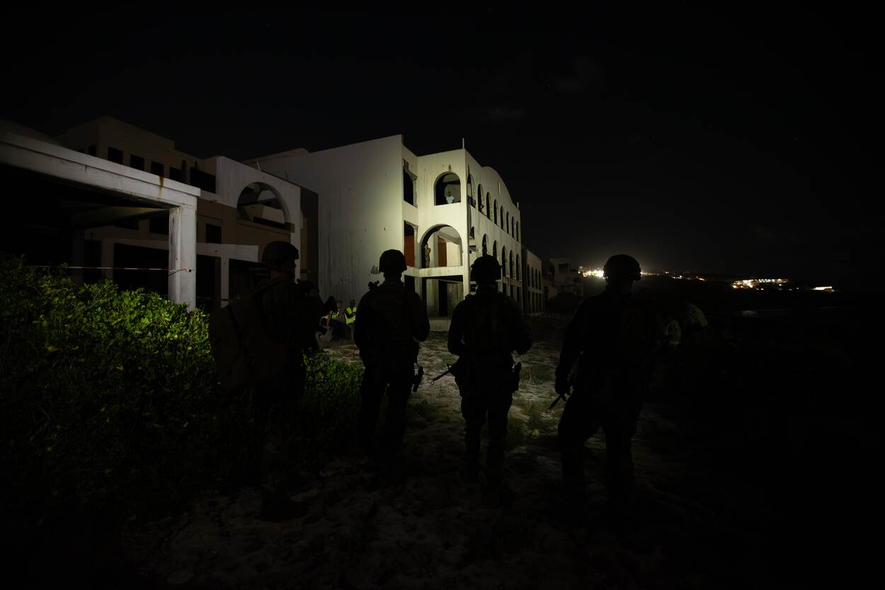 Het levert bijzondere taferelen op. Een dame in bikini loopt het azuurblauwe zeewater uit om even te gaan zonnen. Een paar meter verderop rennen de militairen met gasmasker op en met gewonden over de schouder.
