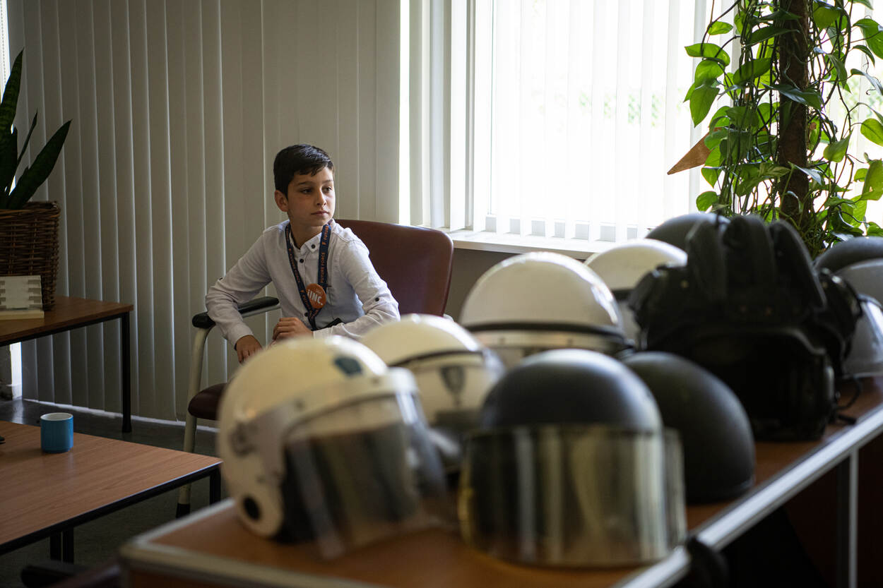 Staatssecretaris Christophe van der Maat: “Vandaag zijn jullie de hoogste baas van de Nederlandse krijgsmacht. De grootste organisatie van Nederland, want hier werken 70.000 mensen.” Vragen te over bij de tieners over hun nieuwe baan en werkplek: “Is er een ondergrondse gevangenis? Een geheime wapenkamer?” Of: “Nederland heeft geen tanks? Ik zag op het Jeugdjournaal dat Nederland tanks had gegeven aan Oekraïne. Waar kwamen die vandaan dan?” Bij hun rondleiding op het ministerie brachten Tuana en Sami onder andere een bezoek aan het hoofd Directie Personeel en de échte baas van alle militairen in Nederland: Commandant der Strijdkrachten generaal Onno Eichelsheim. “Toen ik zo jong was als jullie had ik nog geen idee dat ik later zou gaan vliegen; of dat ik überhaupt bij de krijgsmacht wilde werken.” Met het personeelsvraagstuk helpt hij de tieners een eindje op weg: “Ik denk dat we jongeren meer moeten vertellen wat ons werk allemaal inhoudt. In de klas en ver daarbuiten, om te laten zien dat Defensie meer is dan enkel werken met wapens.” Wat wel eens wordt vergeten? “Kameraadschap is ontzettend belangrijk voor ons. Als je spannende dingen doet en veel meemaakt samen, maak je ook snel vrienden.” Met deze wijsheid en een commander’s coin op zak gaan de jongeren op pad. Waarom jongeren Defensie niet weten te vinden, is Sami vooralsnog een raadsel, want: “Het leger doet coole dingen. Al zie ik hier en daar wel meer computers dan ik had verwacht.” Kwesties zijn moeilijk op te lossen als je de organisatie niet kent. Tijd voor een kijkje achter de schermen! De marechaussee opent de poorten van mobilisatiecomplex Maaldrift in Wassenaar. Bij een bezoek aan de ‘agenten van het leger’ leren de jongeren over de beveiligings- en de politietaak. Ook de voortuigen buiten baren opzien. Daar staat namelijk een deel van het wagenpark van de Koninklijke Marechaussee, inclusief rupsvoertuig YPR. Breed glimlachend racet het duo over het terrein. Tuana heeft de smaak te pakken. “Tot nu toe het hoogtepunt! Heel leuk. Ik had nog nooit in een tank gereden! Hij ging nog best hard.” Sami oefent vast met de baret. Iets voor de toekomst? “Misschien dat ik later wel bij de marechaussee wil.” Terug naar het ministerie. Peinzend en pennend zitten de ‘bazen’ in het kantoor van de staatssecretaris. Hoe hij jongeren beter zou kunnen bereiken? Meer kranten, nieuws en social media inzetten, denkt Tuana. “Vooral video’s op TikTok en Instagram. Laten zien hoe je bijvoorbeeld met een pistool moet omgaan en uit welke onderdelen het bestaat.” Twitter kun je beter mijden: “Daar zitten vooral oude mensen op.” Dan Sami. Die ziet meer rondleidingen wel zitten. “Voor grote groepen, dan raken veel mensen geïnteresseerd.” Als andere oplossing noemt hij het inzetten van een VR-bril. “Laat mensen zien hoe het is om een dagje militair te zijn.” Voor één dag waren ze de baas van de krijgsmacht. “Best cool”, concludeert Sami, “maar ik besefte het niet echt. Ik hoop wel dat er iets met onze ideeën gebeurt. Zou leuk zijn als wij de uitvinders van die plannen zijn.”