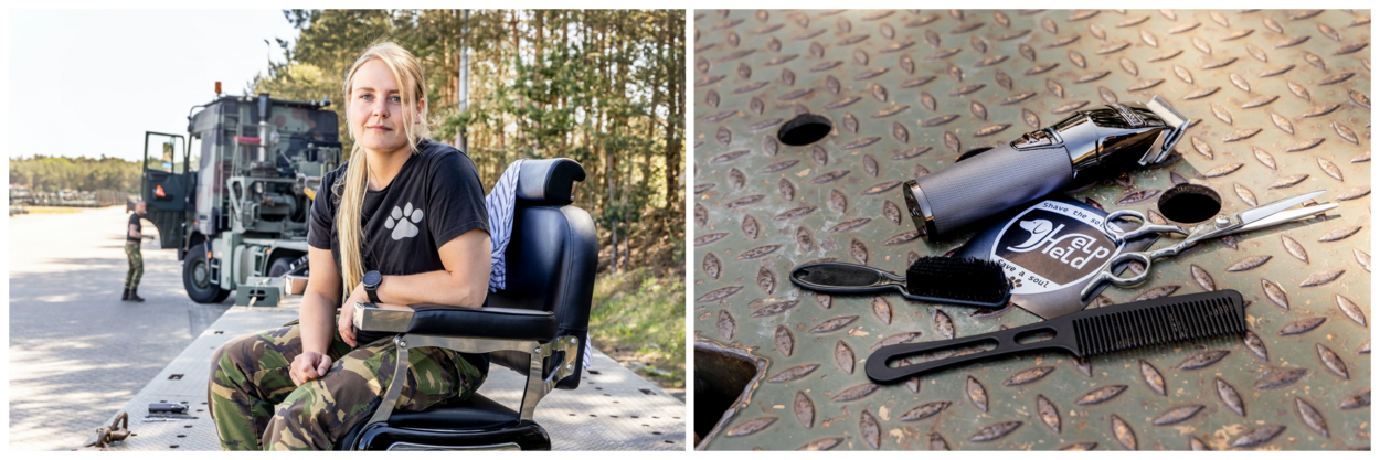 Het initiatief komt niet uit de lucht vallen. Femke is naast chauffeur op de DAF Trekker-opleggercombinatie (Tropco), gepassioneerd barbier. Tijdens haar uitzending naar Litouwen in 2020 nam ze schaar, tondeuse en haartrimmer mee. Wanneer klanten/collega’s plaatsnemen in de kappersstoel ontstaan goede gesprekken, die al snel persoonlijk worden. “Ik merkte dat veel collega’s rondliepen met allerlei issues. Soms door werk, soms door omstandigheden daarbuiten.” De korporaal zag ook dat het, zeker binnen de stoere omgeving van Defensie, vaak moeilijk is om over gevoelens te praten. “Terwijl dat heel belangrijk is. Vooral bij heftige gebeurtenissen. Hoe langer iemand met klachten rondloopt, hoe moeilijker het is om eruit te komen.”