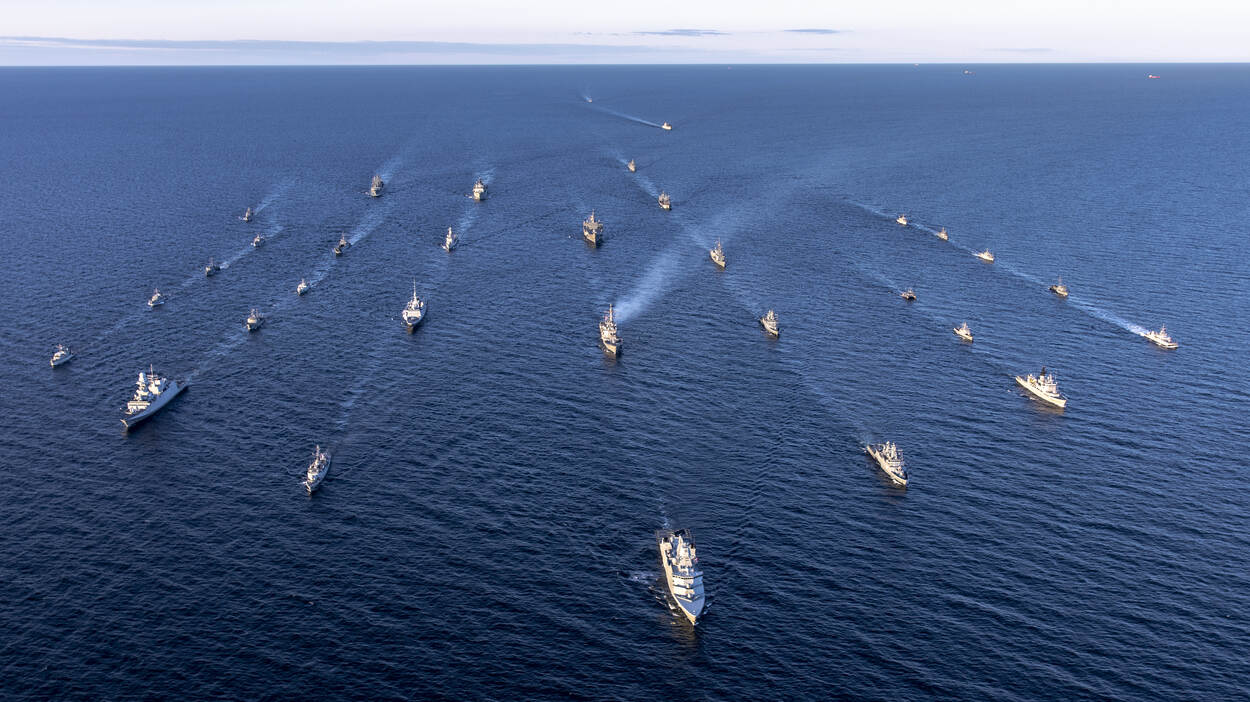 Fraaie overzichtsfoto van diverse schepen die deelnemen aan de oefening Baltic Operations (BALTOPS) 2023. Meer dan zesduizend militairen en tal van schepen uit 21 landen zorgen tot en met vandaag voor een grote militaire aanwezigheid in de Baltische regio. Met de oefening verbetert de NAVO de flexibiliteit en interoperabiliteit. Daarnaast demonstreert het bondgenootschap zijn collectieve vermogen om controle op zee te hebben met een zeer effectieve maritieme component. (foto: U.S. Marine Corps, staff Sgt. Shawn Coover)