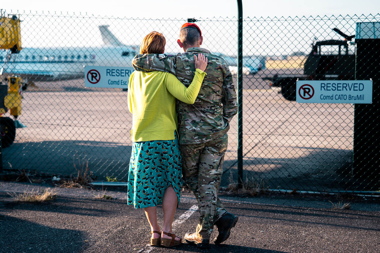 Een honderdtal Belgische militairen heeft afscheid genomen van hun families en zijn vanuit Melsbroek vertrokken naar Roemenië. Daar steunen ze de Battle Group onder Frans commando in de missie ter versterking van de oostzijde van de Forward Land Forces (FLF). Het doel is de versterkte afschrikking van het Bondgenootschap te ondersteunen, Roemenië gerust te stellen en de betrokkenheid van België bij NAVO-operaties te bevestigen. In juli vertrekt een tweede vliegtuig, een A400M, met nog eens honderd militairen (foto: Gert-Jan D'haene)