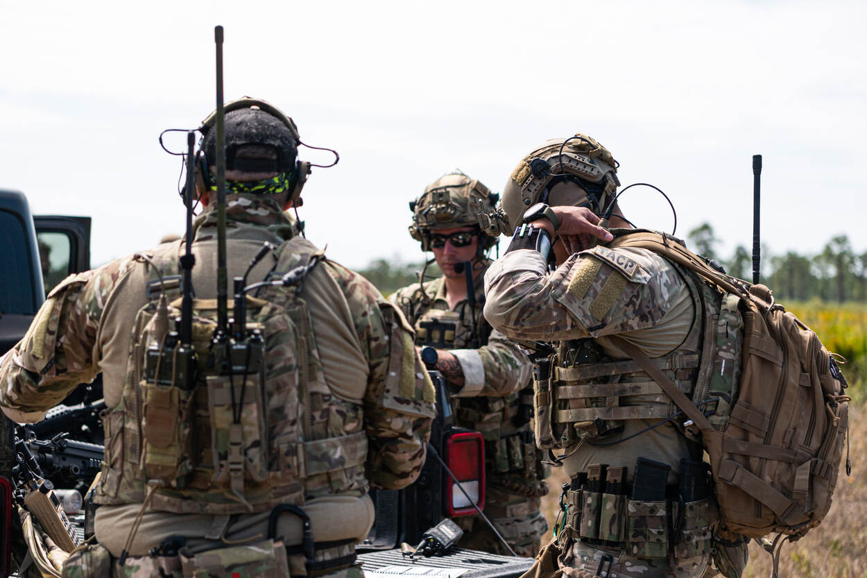 Tijdens de oefening Everglade Sun in Florida worden Amerikaanse, Canadese en Nederlandse JTAC teams (Joint Terminal Attack Controller, red.) getraind op het coördineren van close air support. Daarbij worden vliegtuigen 'op doel' gepraat ter ondersteuning van eigen troepen. Precisiewerk, want de veiligheid is in het geding. Dat kan dus nooit genoeg worden getraind. (foto: U.S. Air Force, 1st Lt. Katie Tamesis)