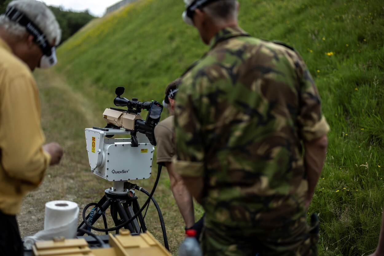Onder leiding van het Defensie Expertise Centrum Counter-IED (DEC-IED) vond onlangs op het Springterrein Reek een reeks interessante experimenten plaats. Met een high energy laser werden onderdelen van geïmproviseerde explosieven bestraald. Het resultaat daarvan betitelde majoor Pascal Trum als bemoedigend. “Wordt vervolgd”, aldus de stafofficier.
