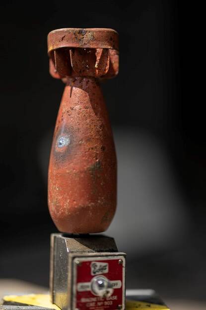 De laser brandde op 125 meter afstand een putje in het springlichaam van een mortiergranaat.