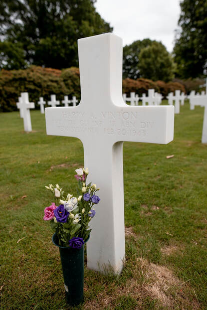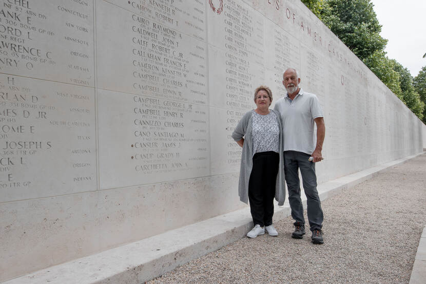 Govert en Hennie Homburg adopteerden een van de namen en een graf op het herdenkingsveld. Deze week is het stel uit Weesp op vakantie in de buurt van Valkenburg. Een trip die niet geheel per toeval goed te combineren is met een bezoek aan de Amerikaanse begraafplaats. Door private Harry Vinton en sergeant Santiago Cano voelen de oud-Defensiemedewerkers een sterke verbintenis met het zuiden des lands.