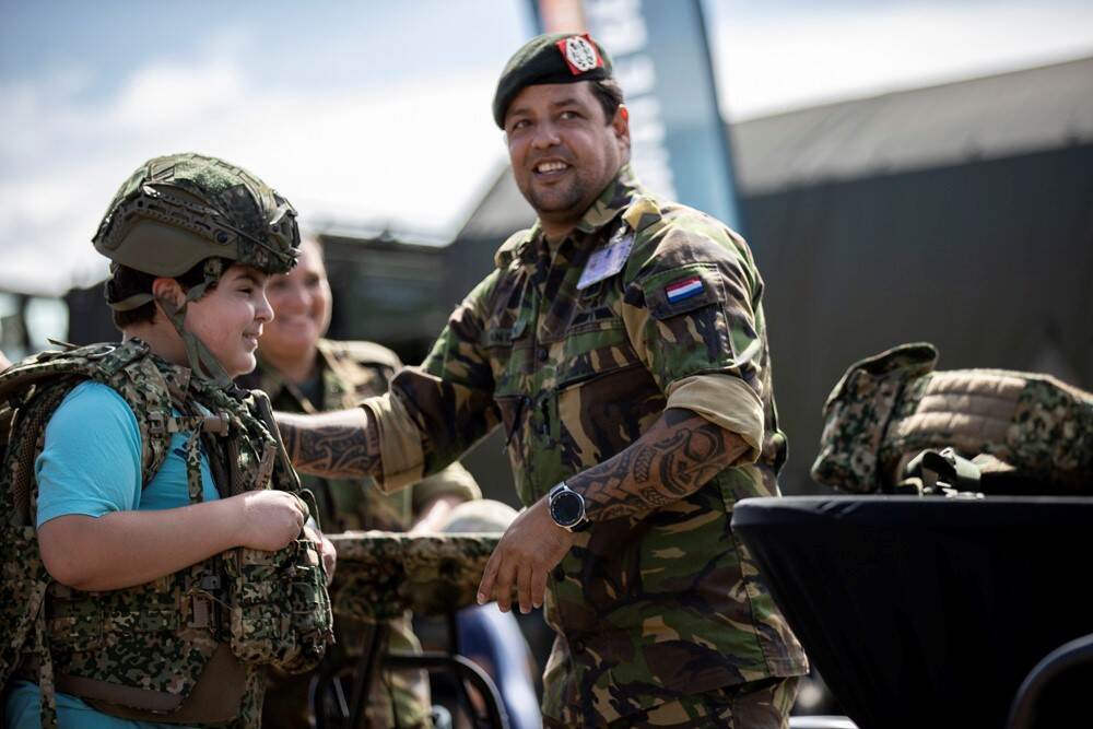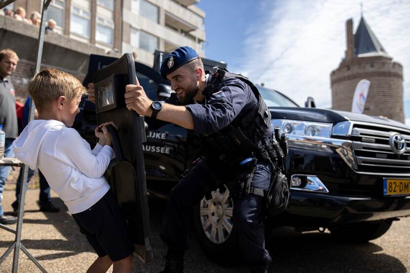 “Bent u van de Brigade Speciale Beveiligingsopdrachten”, vraagt Maarten van tien jaar aan marechaussee-1 Jimmy. “Was dat maar waar”, antwoordt de diender. “Wij zijn van de Hoog Risico Beveiliging.” De kleine man knikt instemmend. Hij blijkt er verstand van te hebben, want Maarten wil naar zijn zeggen niets liever dan later ook bij de marechaussee. “Helemaal goed jongen”, antwoordt Jimmy. “We kunnen nieuwe krachten goed gebruiken.”