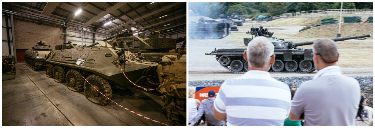 In de zomermaanden rijden er regelmatig diverse pantserwiel- en rupsvoertuigen de ‘Kuwait Arena’ in om deel te nemen aan het spektakel waar veel bezoekers van het Tank Museum op afkomen: rijdende pantservoertuigen van soms ruim tachtig jaar oud. Een ‘stalmeester’ praat het publiek bij over de technische eigenschappen en vooral de tactische functie van het verkenningsvoertuig, de Main Battle Tank en al het gepantserd materieel daar tussenin. Dat veel van deze oude voertuigen nog rijden is te danken aan een groot team van technisch personeel. In een splinternieuwe onderhoudshal sleutelen zij aan de helden van het museum.