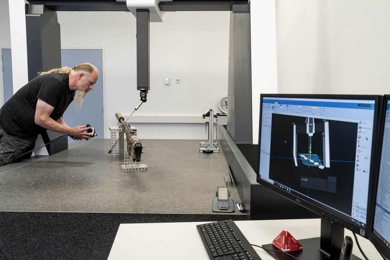 Wapensystemen waarvan je niet zeker weet of de specificaties kloppen? Een schroefblad dat tot op een honderdste millimeter uitgelijnd moet worden? Een weegschaal kalibreren die tot op de milligram in beslag genomen goederen kan wegen? De productgroep Geometrische Meettechniek brengt met 3D-meetapparatuur producten tot 0,001 millimeter nauwkeurig in beeld. “Lang niet iedereen beseft wat wij voor hen kunnen betekenen.”
