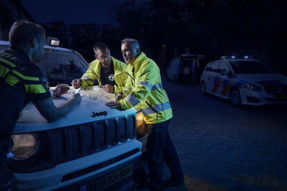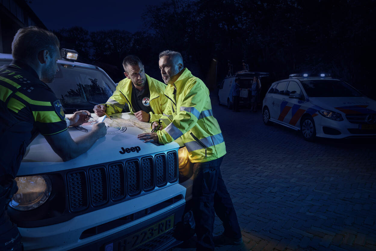 Hij vervolgt: “Voordat we op pad gaan, vragen we iedereen of ze wel in staat zijn om mogelijk iemand aan te treffen. Meestal ben je er prima toe in staat, maar soms heb je een kloteweek en staat de wind verkeerd. Er is regelmatig iemand die zegt: ‘ik moet dit nu niet doen.’ Ook tijdens inzet moet een vrijwilliger uit de zoektocht durven stappen. We geven mee dat je tijdens een zoektocht zelf het belangrijkst bent. Daarna de collega naast je, daarna de vermiste. Het is de taak van de groepscommandant om voor de groep te zorgen en desnoods in te grijpen. Ook mag je elkaar natuurlijk aanspreken, anders is kameraadschap niets waard.”