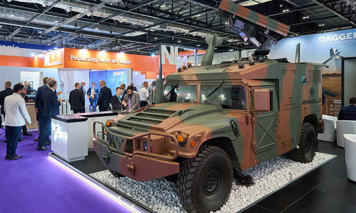 Vanzelfsprekend speelt de oorlog in Oekraïne een grote rol in de toegenomen omvang van DSEI. Er is dit keer een zeer herkenbare blauw-gele ‘stand’ uit dat land met zelfstandig ontwikkeld materieel. Een kloeke pantserwagen en een aantal onbemande systemen is te bezichtigen, maar verder doen de vertegenwoordigers er het zwijgen toe. Net als de Nederlandse industrie bij de vraag wat hun bijdragen zijn aan het Oekraïense defensieapparaat. “Het is verstandig om daarover geen uitspraken te doen”, klinkt het.