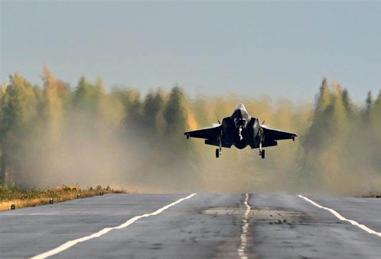Auto's horen op de weg en vliegtuigen op een vliegveld. In Finland denken ze daar heel anders over en zijn autowegen ingericht voor het landen en starten van straaljagers. Daar landden de afgelopen dagen voor het eerst Britse Eurofighters en Noorse F-35A's op een Finse autoweg, de eerste keer dat landen van verschillende NAVO-landen dat deden in Finland. Maar ook de eerste keer dat dit met de A-versie van de F-35 gebeurde. Misschien een idee voor de Nederlandse autowegen? Foto: Finse luchtmacht