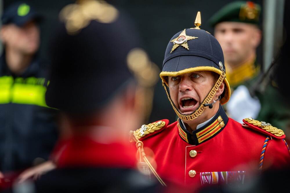 Prinsjesdag levert een schat aan bijzondere foto’s op, maar ons oog viel op dit beeld van militair fotograaf sergeant-majoor Cristian Schrik. 17 Pantserinfanteriebataljon GFPI vormde de erewacht bij de Koninklijke Schouwburg. De eenheden stonden onder leiding van regimentscommandant luitenant-kolonel der Fuseliers Niels Verhoef, die hier in opperste concentratie een commando geeft. Prinsjesdag gaat gepaard met groot militair ceremonieel waaraan dit jaar circa tweeduizend militairen aan meededen.