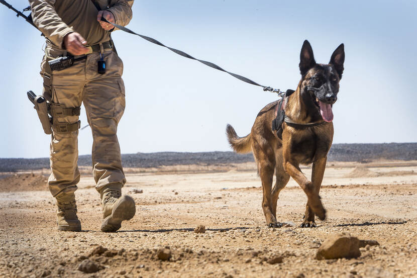 Diensthonden van Defensie hebben sinds kort ook een personeelsnummer, net als alle medewerkers. Ook hebben ze wettelijk gezien allerlei rechten zoals goede voeding, een fatsoenlijk onderkomen en medische zorg. Sinds 2015 krijgen de viervoeters ook een uitzendmedaille, een penning aan de halsband. “Daar kwam destijds best wat kritiek op”, weet Van Kessel nog. “Wij zien honden als een hulpmiddel, terwijl ze in veel andere landen zoals Engeland en Amerika behandeld worden als collega’s."