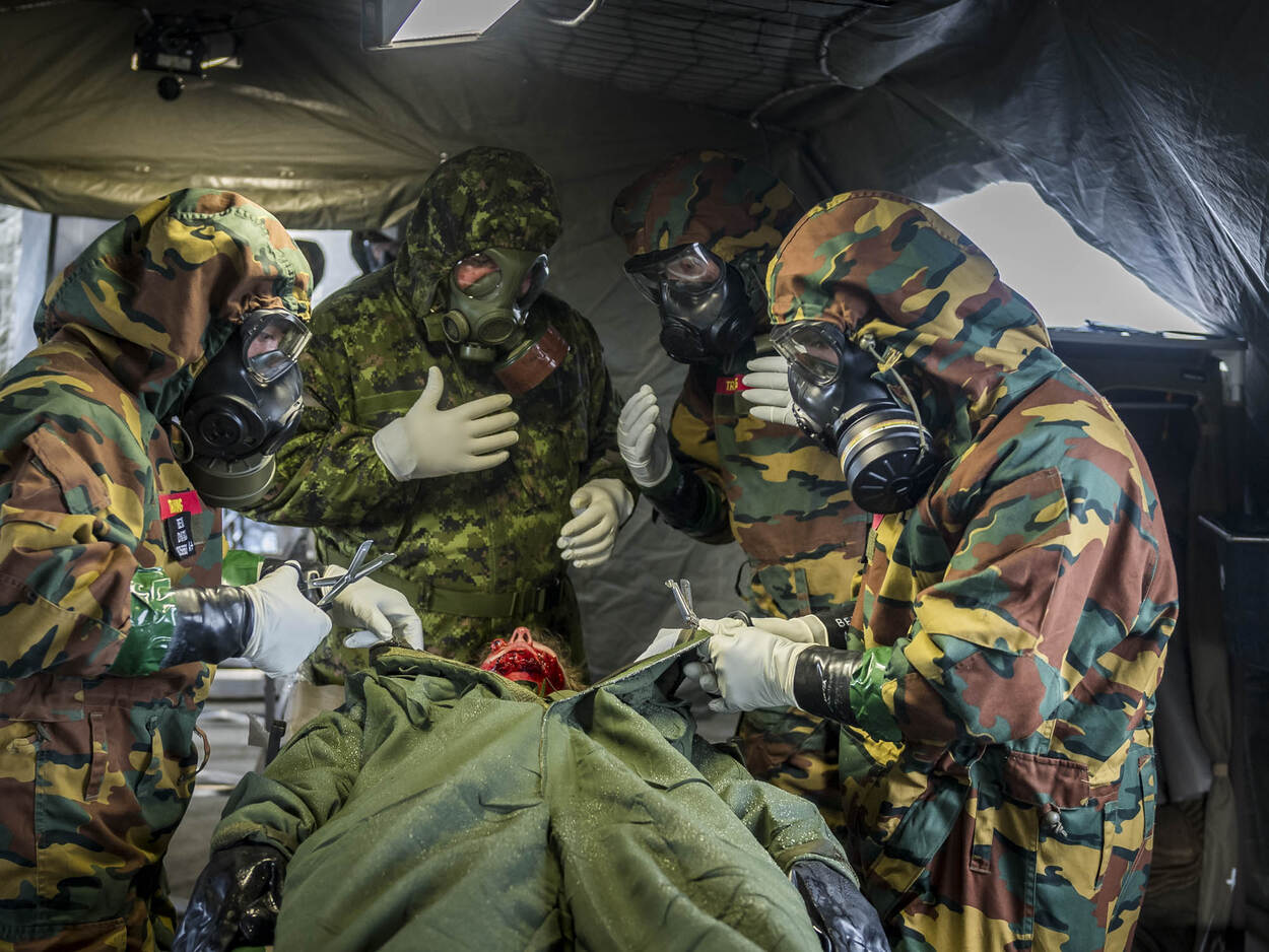 Vandaag eindigt in België Toxic Trip 2023. Een oefening die om de twee jaar onder de paraplu van de NAVO wordt gehouden, om voorbereid te zijn op chemische, biologische, radiologische en nucleaire (CBRN) aanvallen. Meer dan zeshonderd militairen uit achttien verschillende landen trainden op realistische scenario’s. Het doel: vertrouwd raken met elkaars procedures en technieken, zodat er bij incidenten snel en doeltreffend gereageerd kan worden. (foto: Adrien Muylaert)