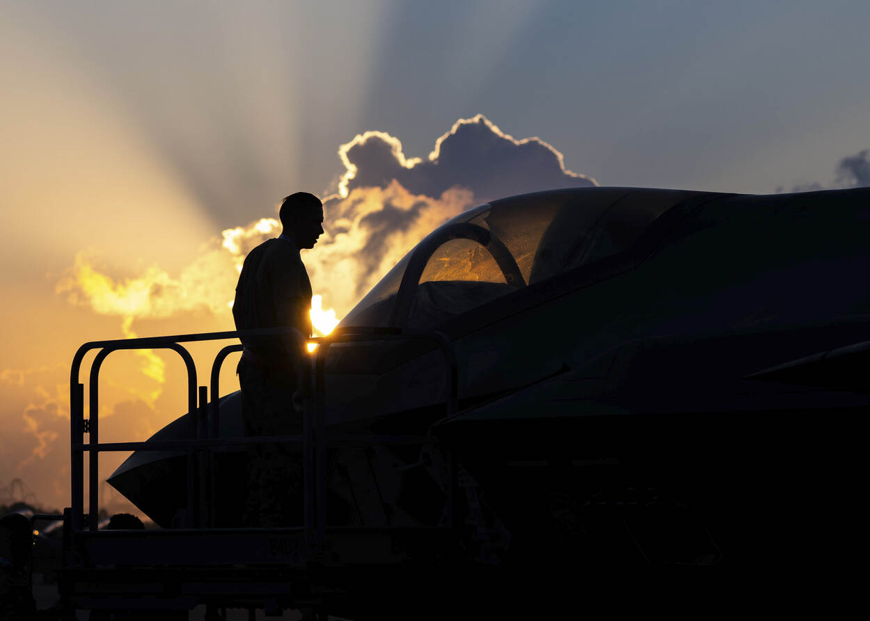 Fraaie opname van de ochtendinspectie van een F-35A Lightning II die behoort tot 34th Fighter Generation Squadron. De foto is genomen tijdens de William Tell air-to-air competitie op Savannah Air National Guard Base. Deze competitie heeft de reputatie het speerpunt te zijn van 'air-to-air combat': luchtgevechten op het scherpst van de snede waarbij de nieuwste tactieken, technologie en trainingsmethoden aan bod komen. (foto: Kaitlyn Ergish, US Air Force)