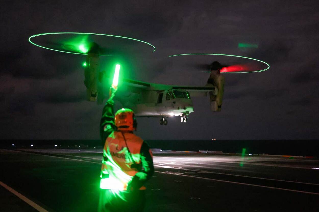 Om er maar een paar te noemen: Super Stallions, UH1 Super Hueys en AH-1Z Vipers. Ze kwamen allemaal voorbij op het dek van HMS Prince of Wales, bezig met missies voor de kust van de Verenigde Staten. Maar het mooiste plaatje werd toch wel gemaakt toen deze Osprey MV-22 van 2nd Marine Aircraft Wing verscheen. De unieke tiltrotor, waardoor de Osprey verticaal kan opstijgen en landen, gaf de foto net dat extra's! (foto: Royal Navy)