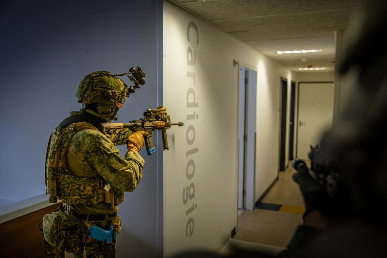 “Steeds vaker vindt ons optreden plaats in verstedelijkt gebied, ofwel Military Operations in Urban Terrain (MOUT). Een civiel ziekenhuis dat tot voor kort nog in gebruik was simuleert dat heel goed.”