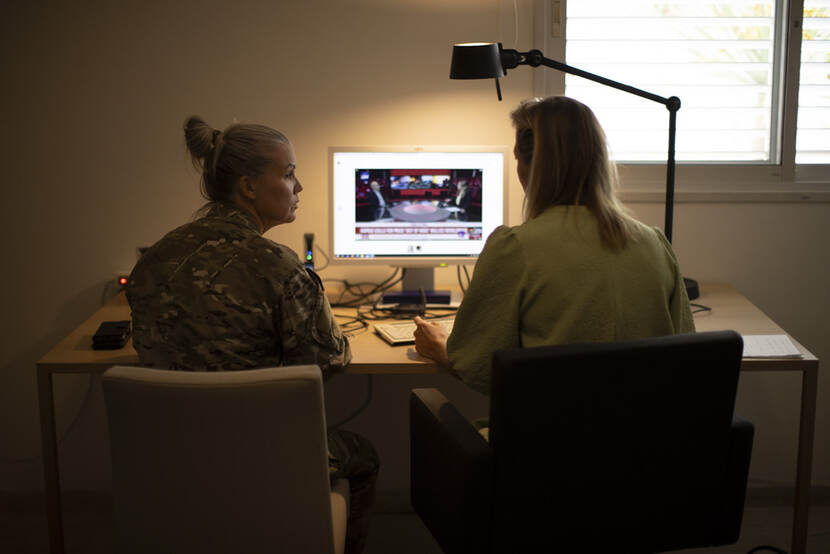De ministeries van Defensie en Buitenlandse Zaken werken nauw samen om Nederlanders weg te halen uit Israël, dat in oorlog is met Hamas. Vanuit Tel Aviv sturen twee vrouwen de crisisoperatie aan. Zij blikken terug op de eerste, hectische week.