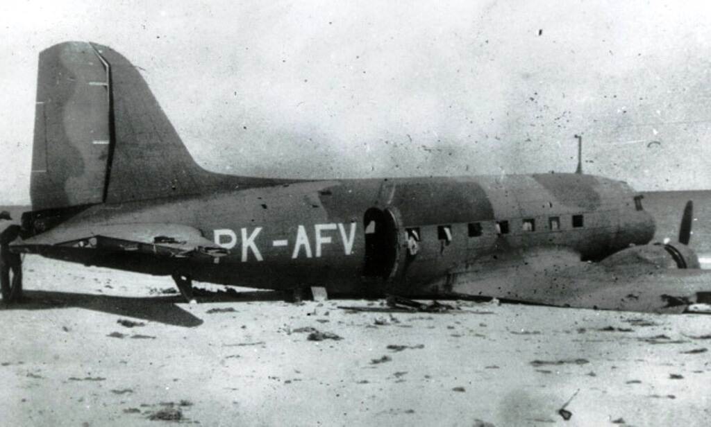In een kwartier tijd worden het vliegveld van Broome en de omgeving gebombardeerd. Daarbij vallen tachtig doden en 32 gewonden. Ook de Dakota wordt beschoten en de kogels schieten door het dunne aluminium. Verschillende passagiers raken gewond en de kist vliegt in brand. Uit angst voor een explosie maakt de gewonde piloot Smirnoff een duikvlucht. Bij de noodlanding op het strand van Carnot Bay draait het toestel 180 graden om. De neus van de kist rolt wonder boven wonder in zee waardoor het vuur dooft. Onder voortdurende Japanse beschietingen proberen de passagiers het toestel te verlaten. Zes inzittenden weten zichzelf in veiligheid te brengen. Vier personen redden het niet, waaronder Hendriksz. Hij sneuvelt op 26-jarige leeftijd.