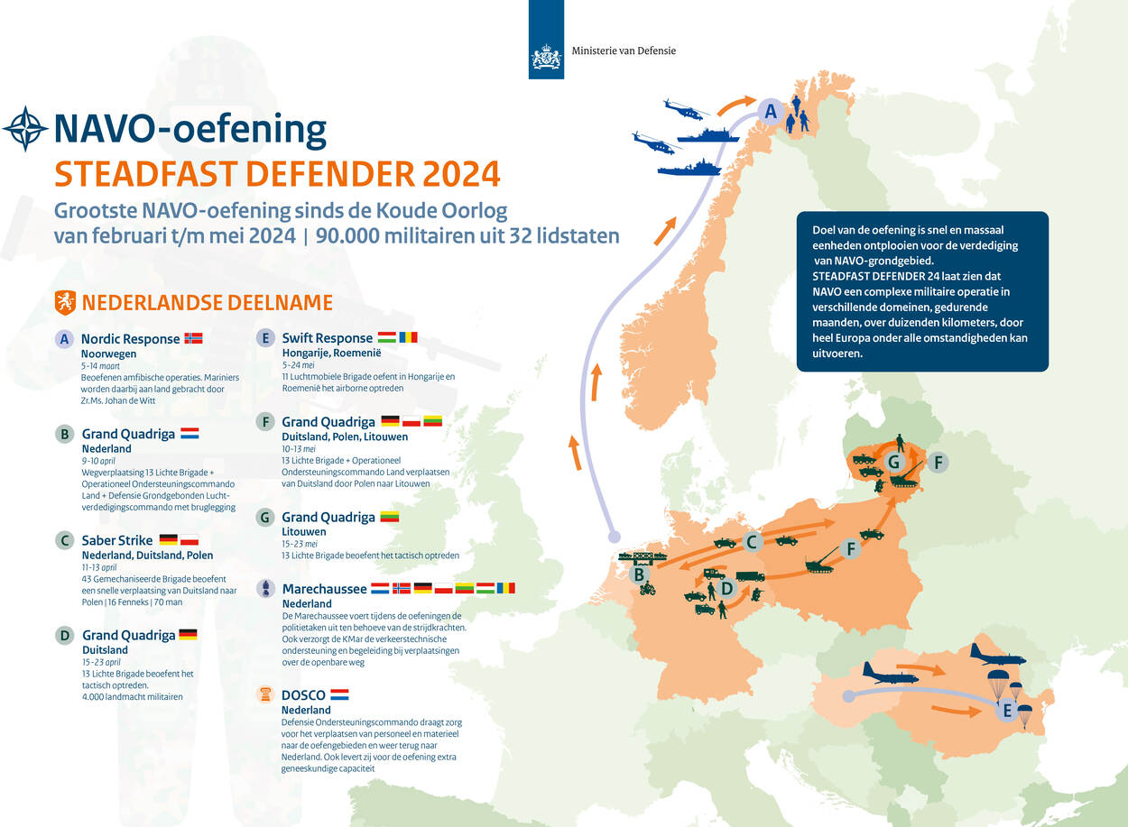 De oefening Grand Quadriga is onderdeel van Steadfast Defender. De grootste NAVO-oefening sinds de Koude Oorlog, waar negentigduizend militairen (waarvan 4.500 Nederlandse) uit alle 32 NAVO-landen aan deelnemen. De oefening gaat uit van een Artikel 5-scenario, waarbij een NAVO-lid wordt aangevallen. De alliantie beschouwt een aanval op een van hen als een aanval op alle lidstaten.