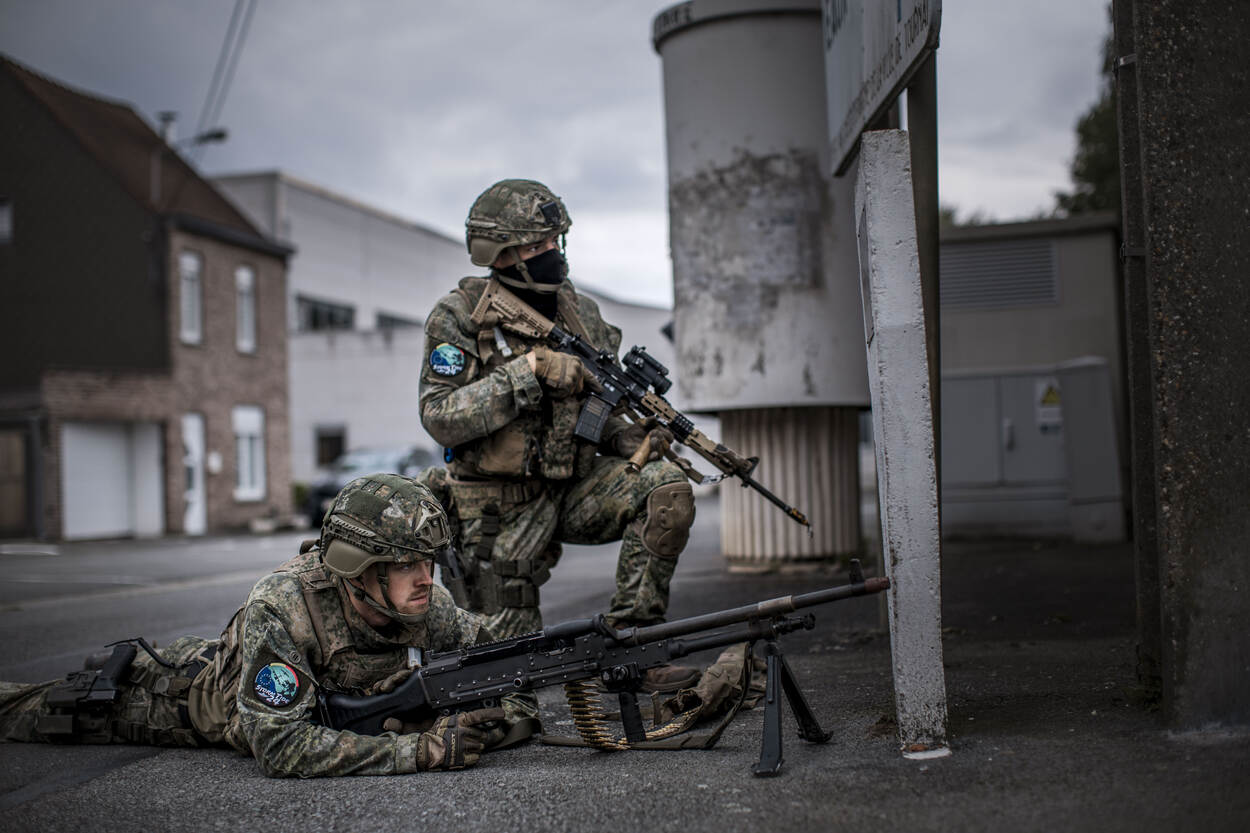 “Het is fijn werken met de mariniers”, zegt luitenant-kolonel Patrick Winnepenninckx. Volgens de commandant van 3Para brengt de wisselwerking tussen de twee groepen een extra laag aan in de oefening. “Dit vindt plaats in het Franstalige gedeelte van België. De evacuees zijn hoofdzakelijk Franstalig en dat is een uitdaging voor de mariniers. We hebben dat opgelost door iemand bij hen te plaatsen die kan vertalen. Dat zijn details waar over nagedacht moet worden om de NEO of operatie te laten slagen.”