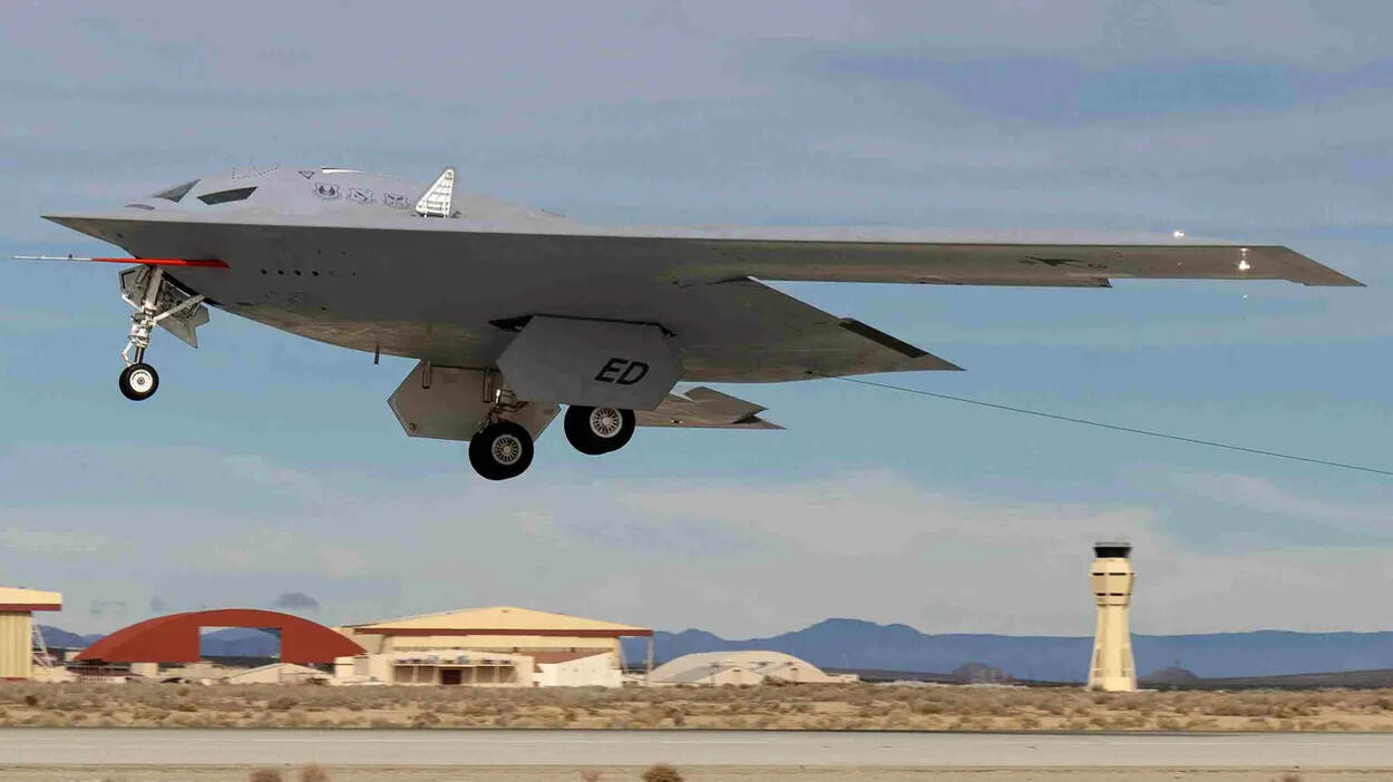 Hoewel de testvluchten met de ‘long-range, highly survivable, penetrating strike stealth bomber’ eind vorig jaar al begonnen vanaf Edwards Air Force Base, zijn er nu voor het eerst zulke duidelijke foto’s naar buiten gebracht.