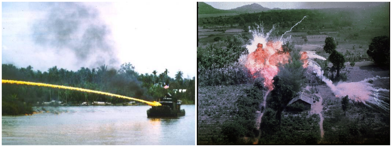 Tijdens de Tweede Wereldoorlog zetten de oorlogvoerende landen met zekere regelmaat brandbommen in bij aanvallen op gronddoelen. In 1942 ontwikkelen de Amerikanen een nieuw type brandbom, de zogenoemde napalmbommen. Daarbij is benzine vermengd met naftenaat en palminaat en voor de ontbranding wordt vaak fosfor gebruikt. Het effect van de bom is dat de brandende spetters blijven doorbranden; ze blijven als het ware 'plakken'. Met als gevolg grote brandschade bij gebouwen, voertuigen, andere installaties en gruwelijke brandwonden bij mens en dier.