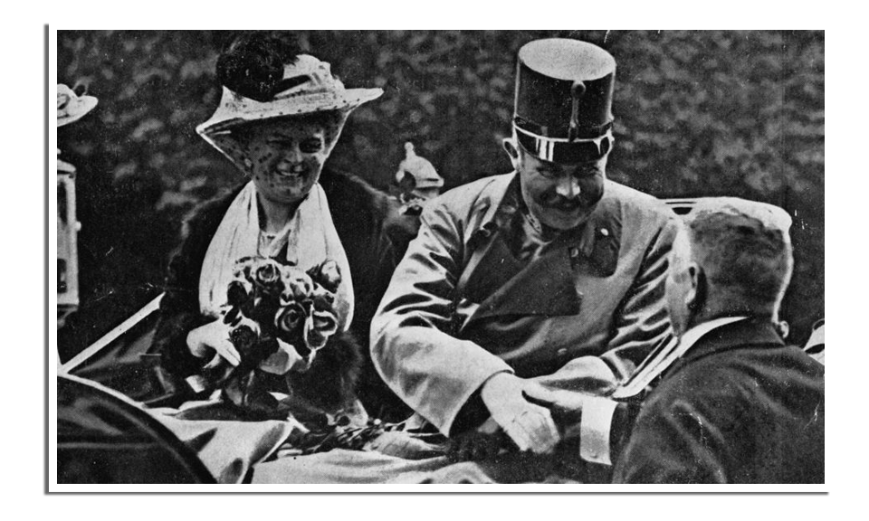 Aartshertog Franz Ferdinand en zijn vrouw Sophie, vlak voor de aanslag.