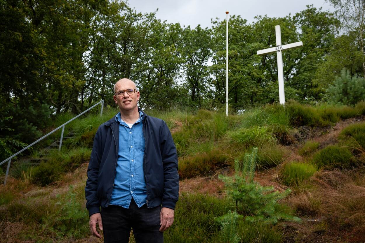 Het wit gelakte gedenkkruis, met daarop de tekst ‘R.I.P’, staat er die vele decennia later eenzaam bij tussen het hoge struikgewas. Terwijl Van Loo het verhaal vertelt, kijkt hij om zich heen. “Het zal mij niks verbazen als de verzetsstrijders hier hebben gestaan tijdens de executie.” Hij wijst richting het heuveltje waarop het kruis staat. “Het is zo afgelegen en rustig hier; deze plek raakt me.”