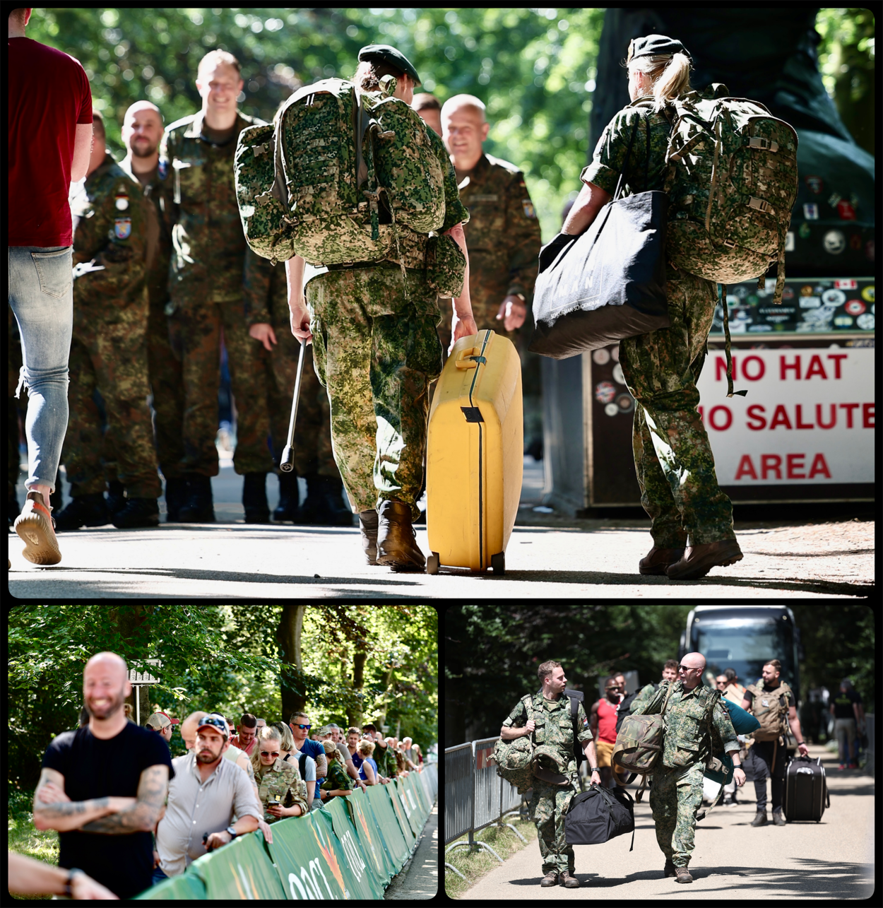 Even na het middaguur rijdt een grote bus Kamp Heumensoord op. Oude heren, keurig in pak, stappen uit. Het is een groep veteranen van Militair Tehuis Bronbeek die vandaag een kijkje komt nemen op Heumensoord. Vanaf het podium klappen ze de hele middag voor binnenkomende detachementen. Rond 16:15 uur worden ze in ganzenpas de biertent ingeloodst, waar iedereen hen een warm applaus geeft. De dag telt uiteindelijk 819 uitvallers. Een jaar eerder waren dat er op dag één 732.