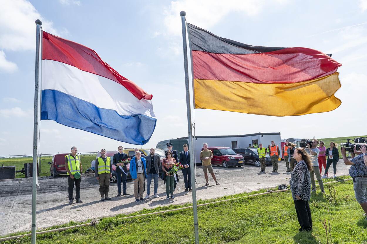 Bezetter of bevrijder: aan welke kant men ook vocht tijdens de oorlog, iedereen heeft recht op berging. “Het is onze collectieve plicht Wilhelm een waardig afscheid te geven”, vertelt burgemeester Johannes Kramer van de gemeente Noardeast-Fryslân (waar onder andere Hallum en Holwerd onder vallen, rechts op de foto). “Hiermee kunnen de nabestaanden dit hoofdstuk afsluiten.” In woorden van de Duitse defensieattaché kolonel Volker Eden: “De oorlog ging gepaard met de bekende verschrikkingen en voortvloeiende ellende. Deze gebeurtenissen mogen we aan beide kanten niet vergeten. We geven Georg Wilhelm met deze berging een rustplaats op de militaire begraafplaats in Ysselsteyn. Daarnaast geven we onze herinneringen aan deze verschrikkelijke tijden door aan nieuwe generaties. Zij aan zij, schouder aan schouder. Want het vredesproject Europa lijkt meer in gevaar dan ooit.”