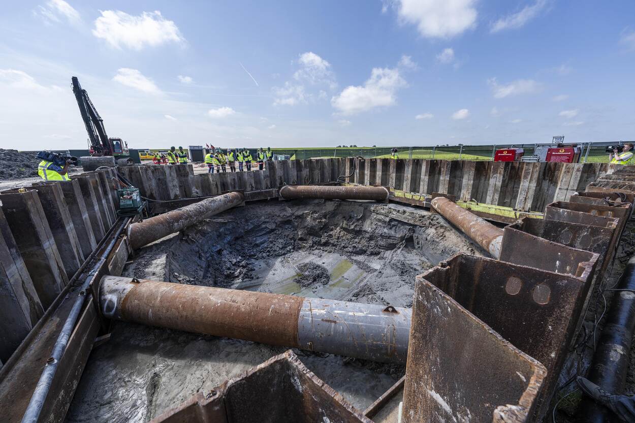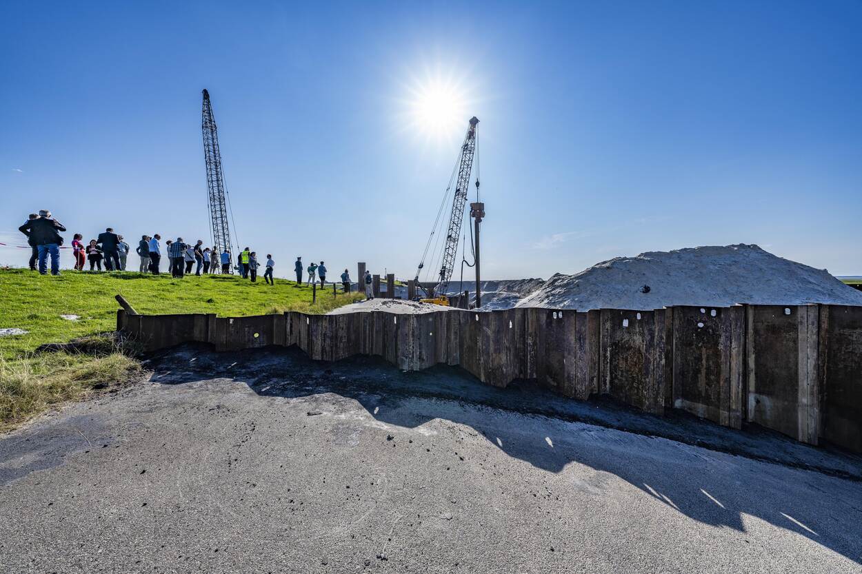 Naast de crashlocatie in Hallum werd ook in het Friese dorp Holwerd gegraven. Daar crashte een Vickers Wellington HE346. Aan boord van dit toestel van Britse makelij waren vijf bemanningsleden. Deze berging is bijzonder complex, omdat er bijna honderd meter aan zeedijk voor afgegraven moest worden. Een tijdelijke waterkering van damwanden moet het wassende water tegenhouden. Dit gebeurde in samenwerking met het waterschap Fryslân en een civiele aannemer, vertelt Stafofficier Vliegtuigbergingen Coen Cornelissen, die de volledige berging coördineert. “Als je een gat in de dijk wilt maken maak je omwonenden misschien niet heel blij”, glimlacht hij. “De tijdelijke zeewering voldoet aan dezelfde technische eisen als de ‘normale’ dijk. Mocht het waterpeil echt stijgen, dan kunnen gebruikmaken van zogenoemde calamiteitenklei, die op het depot opgeslagen ligt.” Het is voor Cornelissen de eerste berging als Stafofficier. “Ontzettend bijzonder om te zien hoe we met zoveel disciplines hier bij elkaar bezig zijn. Helemaal dat we bergen op twee plekken tegelijk: dat is nooit ergens eerder op de wereld vertoond.”