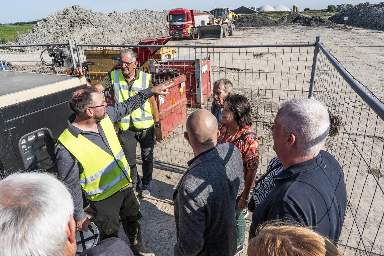 Maar voor het verhaal in Hallum kan worden afgesloten moet er nog veel werk worden verzet. Al het materiaal wordt na afgraving afgevoerd naar het depot, enkele kilometers verderop in Holwerd (zie kader hieronder: twee locaties, twee wrakken). De plakkerige grond, waar op het oog niets aan te zien is, wordt per vrachtwagen naar de verwerkingsplek vervoerd. Alle klei wordt door een zeef gehaald en op de lopende band met de hand uitgezocht en afgespoeld. Hier veranderen de klompen klei in scherven van de geschiedenis. Deze verwerking van grond werd gisteren stilgelegd, vanwege de verontreinigde grond. Het wrak kon wel volledig geborgen worden.
