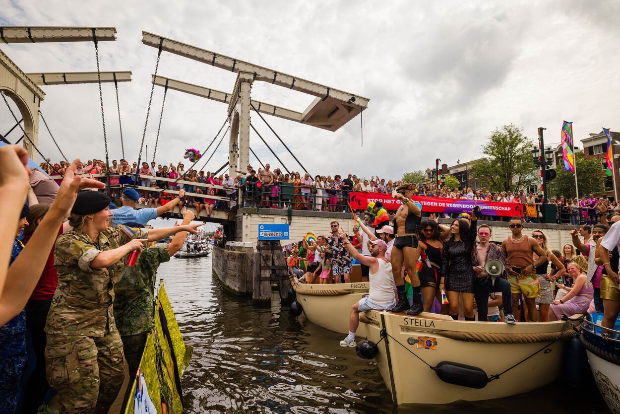Het Pride-festijn houdt de hoofdstad wekenlang in de greep, maar de botenparade vorige week zaterdag geldt als het summum van het festival. Tussen 12:00 en 18:00 uur laveerden tientallen fraai uitgedoste boten door het Oosterdok, de Nieuwe Herengracht, Amstel, Prinsengracht en het Westerdok. Defensie was er, met bootnummer 75, voor de twaalfde keer bij om aandacht te vragen voor het belang van diversiteit binnen de krijgsmacht. “Militairen werken vaak onder grote druk en moeilijke omstandigheden. Het is daarom belangrijk dat iedereen zich vrij voelt om zichzelf te zijn”, verklaarde Commandant der Strijdkrachten generaal Onno Eichelsheim eerder.