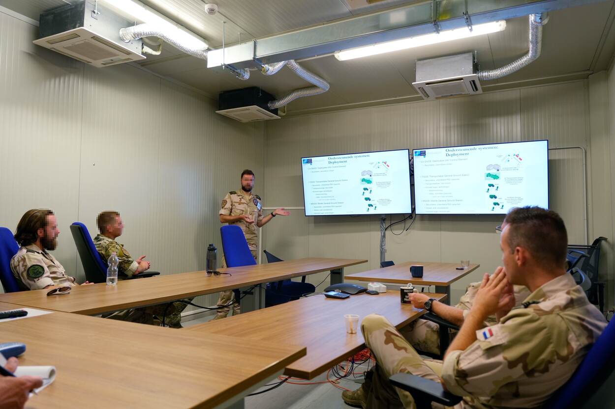 Kapitein Sjoerd geeft een briefing voor de Nederlandse militairen op Sigonella.
