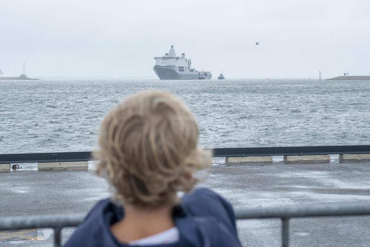De terugkeer van het logistiek- en bevoorradingsschip Zr.Ms. Karel Doorman, die vorige week in de haven van Den Helder aankwam, was voor veel ‘marinegezinnen’ het hoogtepunt van dit jaar. De laatste loodjes wegen het zwaarst, ook voor dit kind dat uitkijkt naar de thuiskomst van een van de 250 opvarenden. Het schip heeft de afgelopen vier maanden in de Rode Zee en Golf van Aden bijgedragen aan de bescherming van internationale scheepvaart tegen de dreiging van Houthi’s. Het verzorgde de logistieke ondersteuning en voorzag andere deelnemende schepen onder meer van brandstof, munitie en goederen. Onze fotograaf John van Helvert legde de terugkeer vast.