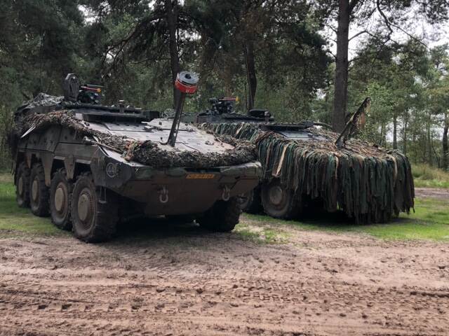 Zoals gezegd doen de Beexjes dagelijks hun ronde over de Oirschotse Heide. Of er dan gezellig wordt gekeuveld of dat het oneindige ‘Potje met vet’ over de heide schalt, dat weten we niet. Wel dat de camera altijd paraat is. Want op hun uitje stuitten Maria en Henk recent op twee Boxers van de genie. Deze zwaargewichten zijn in de tussentijd alweer tien jaar bij de landmacht in dienst. Het debuut voor de versie van de genie vond in 2015 plaats op het Franse oefenterrein La Courtine, ooit zo mooi bezongen door Rijk de Gooijer in ‘Brief uit La Courtine’.