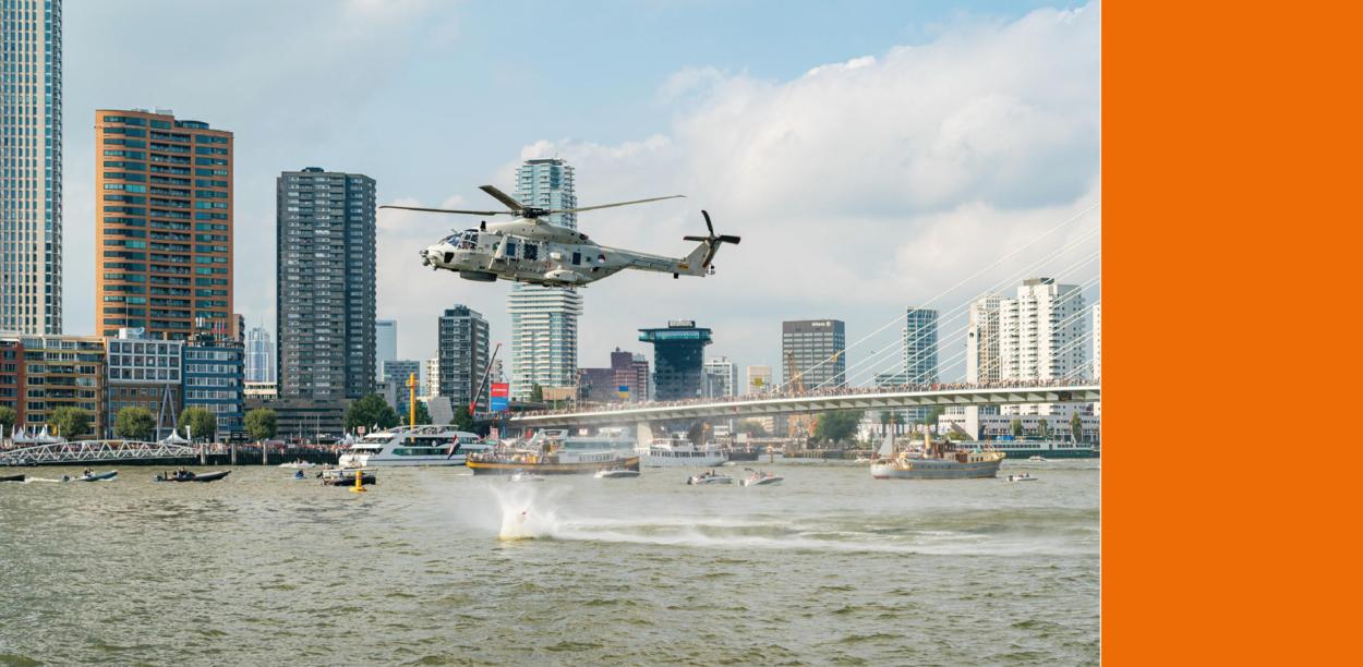 Op de Maas geeft de marine zoals altijd weer demonstraties. Zo staat er een anti-terreur demonstratie op het programma en wordt een gekaapt schip bevrijd door mariniers. Verder vliegt een NH90-maritieme helikopter laag over het water om oefentorpedo’s te lanceren.