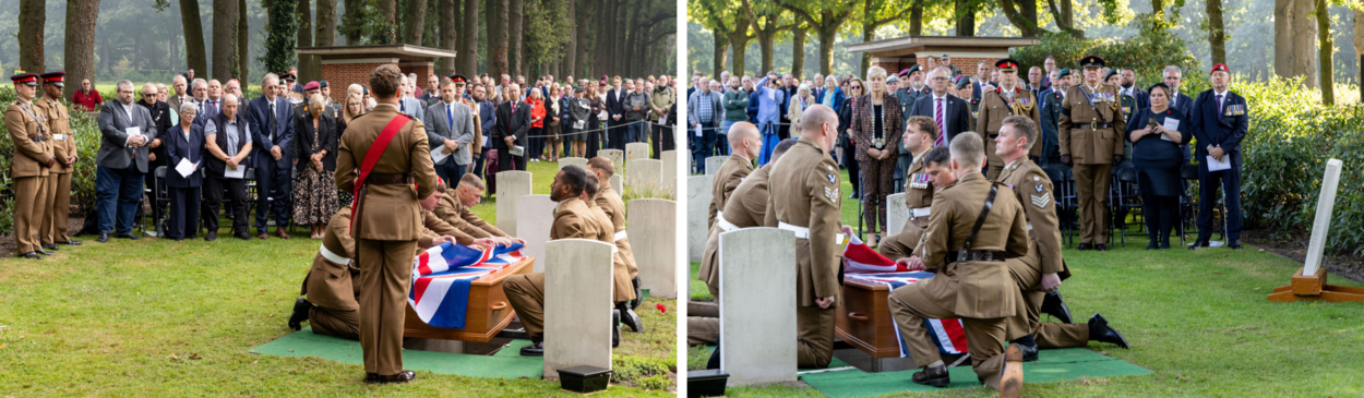 Tachtig jaar nadat de Engelse lieutenant Dermod Anderson en soldaat Henry Moon dodelijk gewond raakten bij Duitse mortieraanvallen, hebben ze hun laatste rustplaats gekregen. De stoffelijke resten van de militairen die sneuvelden en vermist raakten tijdens Operatie Market Garden zijn woensdag bijgezet op de Airborne Begraafplaats in Oosterbeek. Dat gebeurde in het bijzijn van nabestaanden en hun eigen regimenten.