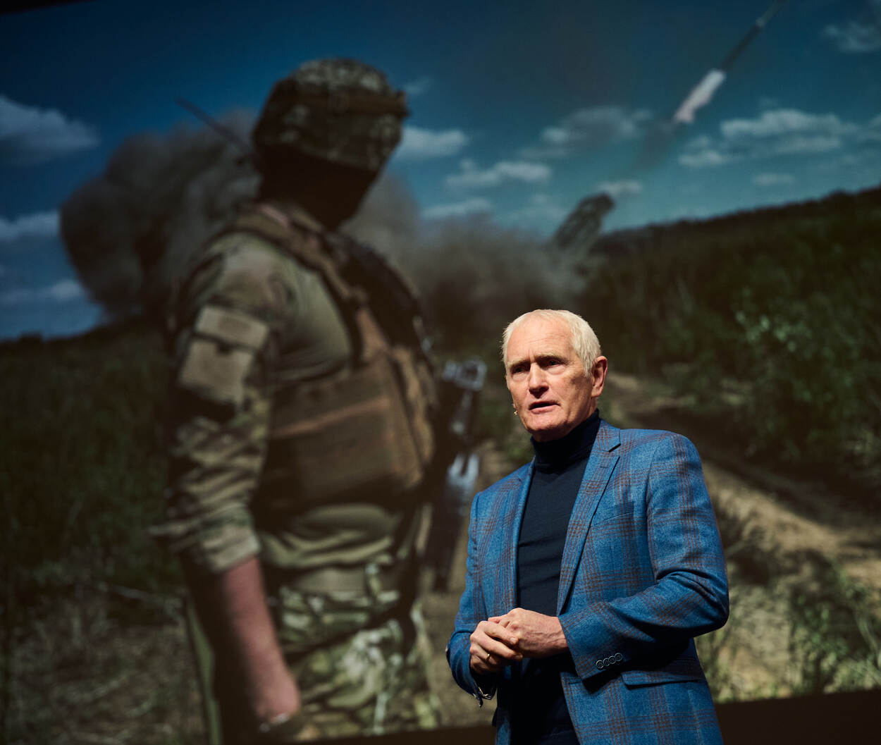 Generaal buiten dienst Mart de Kruif. Hoewel hij en z'n collega al járen weg zijn bij Defensie, praten ze nog volop mee over oorlogsgerelateerde onderwerpen.