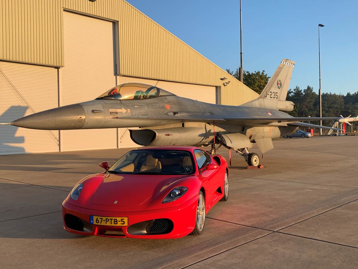 Nee, dit is geen beeld uit Top Gear, het voormalige humoristische Britse autoprogramma waarin onder meer uiteenlopende autoraces te zien waren. Het is een foto van Carel Ruigrok van een Ferrari-evenement voor het goede doel, afgelopen zaterdag op Vliegbasis Eindhoven. Speciaal georganiseerd voor de leerlingen en hun ouders van het Taalbrug College in de Brabantse plaats. Deze kinderen met een communicatieve en/of auditieve beperking konden overdag rondjes meerijden in een van de 28 Italiaanse racemonsters en, als ze dat wilden, in een F-16 gaan zitten.