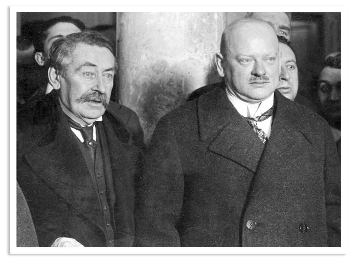 De Franse staatsman en latere Nobelprijswinnaar Aristide Briand (links) en Gustav Stresemann in zwart-wit.