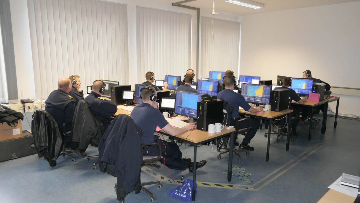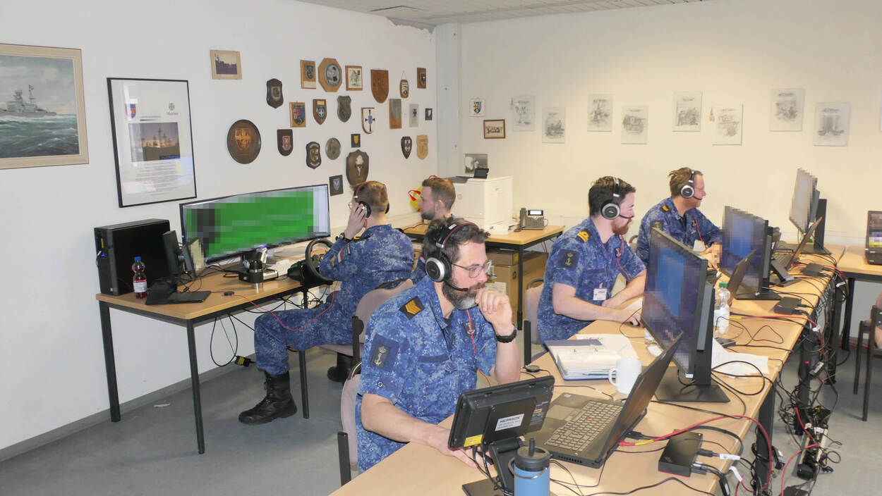 In het virtuele maritieme scenario voert de Maritime Battle Staff (MBS) van het Commando Zeestrijdkrachten het bevel. Vanuit een nagebootste commandocentrale in het Duitse Wilhelmshafen staat de staf in contact met NAVO-collega’s op allerlei plekken in de wereld. “Er zit een aantal grote voordelen aan oefenen op deze manier”, stelt operatieofficier kapitein-luitenant ter zee Lourens. “Het is eenvoudiger te organiseren dan een training op zee. Dankzij beveiligde netwerken kan niemand meekijken en bovendien bespaart het tijd, brandstof en personeel. Real life assets, zoals schepen, zijn schaars en kosten veel geld.”