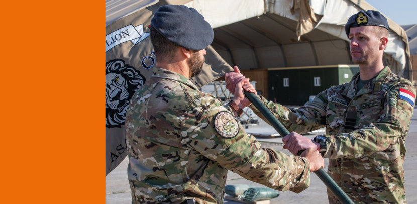 Het Nederlands helikopterdetachement in Irak is afgelost. Afgelopen week droeg commandant luitenant-kolonel Spithoven (op de foto links) zijn functie over aan het hoofd van het nieuwe detachement, luitenant-kolonel Stevens (op de foto rechts).