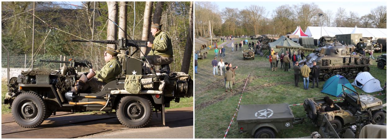 Dat de Nederlandse vereniging, die zich inzet voor het behoud van militaire vaar-, voer- en vliegtuigen uit de Tweede Wereldoorlog, aanwezig was in Westerbork, vertelt ook de foto van André Jans. Met een mooi overzicht van de voertuigen en belangstelling vanuit de Drentse gemeenschap.