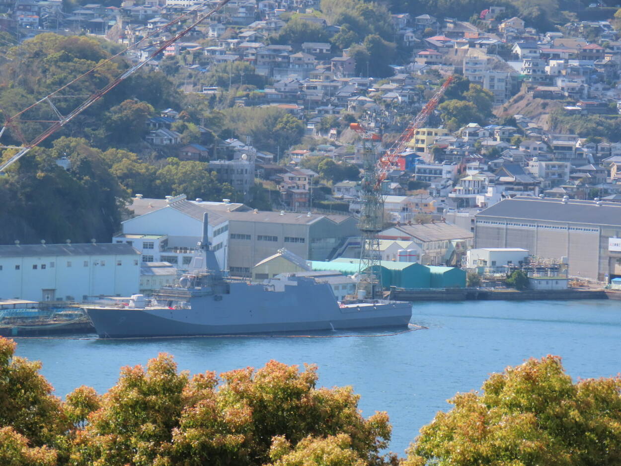 Neem oud-marineofficier Manuela Wibier, die een reis maakte naar Japan. In het land van de rijzende zon bezocht deze zeer actieve ‘Veteraan in de klas’ ook Nagasaki, waar de scheepsbouwer Mitsubishi Heavy Industries een flinke vinger in de pap heeft. “Ik kon het natuurlijk niet laten een foto te maken van de schepen die in aanbouw zijn voor de Japan Self Defence Force, zoals de krijgsmacht daar heet”, laat ze weten.