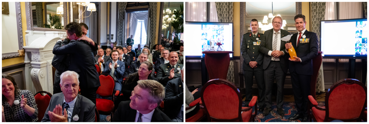 Dat waren sergeant-majoor Patrick de Groot en Henk Tukker van de DVLMB eveneens. “Ik zit niet snel om een woordje verlegen, maar ik was wel even stil toen we de nominatie kregen. Dat geldt helemaal nu ik de verhalen achter de andere nominaties hoor. Daar word je nederig van”, vertelt Patrick de Groot met de Witte Anjerprijs in handen. “We bestaan pas ruim twee jaar en dan al deze erkenning krijgen. Dat is prachtig.”