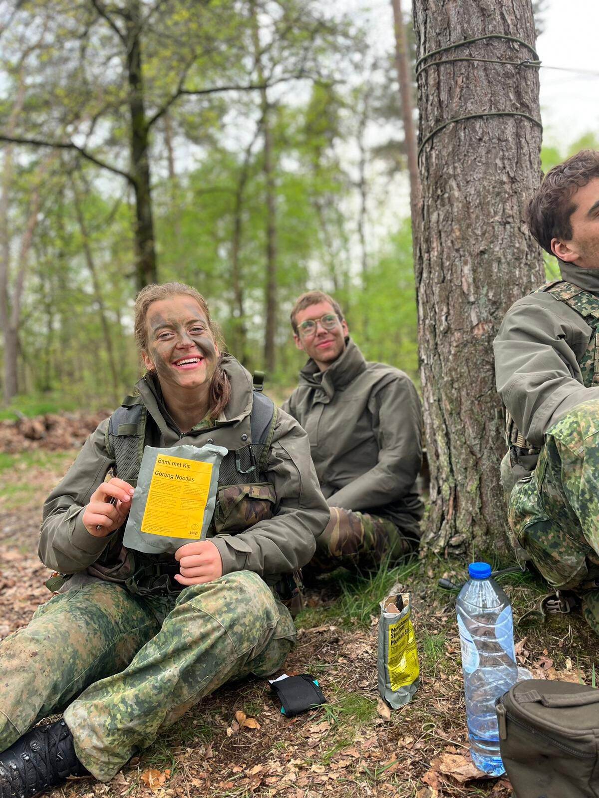 “Schotland staat al niet bekend om het mooie weer, maar we lagen daar met z’n allen echt in de stromende regen in het veld. We hadden flink slaaptekort opgelopen en de eindoefening kwam eraan. In de avond moesten we bedenken wat onze strategie voor de volgende dag werd. Met lampjes op onze hoofden en met doorweekte schriftjes zaten we daar. Maar op dat moment wisten we: 'we gaan dit met z’n allen doen'. Dat was super bijzonder.”