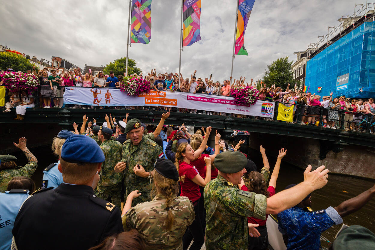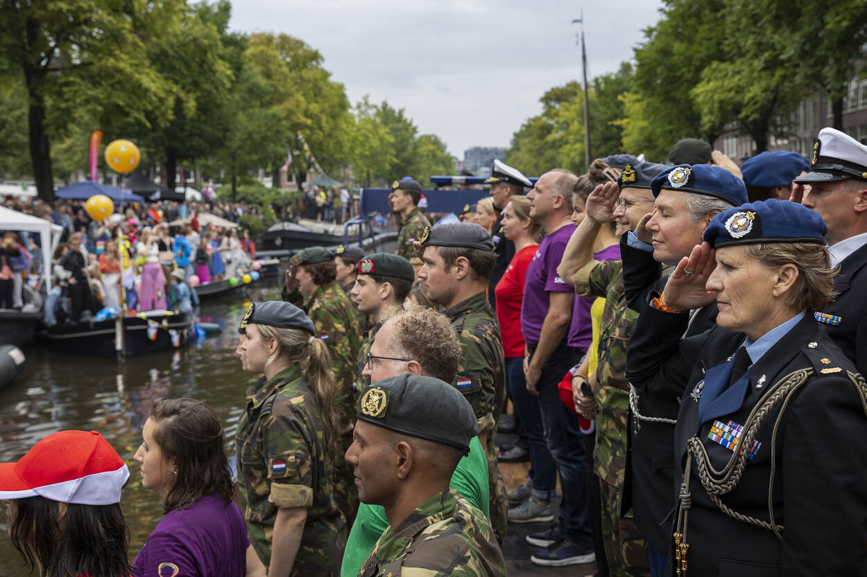 De defensieboot vaart op 2 augustus weer mee met de Canal Parade, tijdens Pride Amsterdam. Aan boord stappen zo'n honderd opvarenden, zowel lhbti+’ers als sympathiserende collega’s. Volgens paradecommandant en brigadegeneraal bij de Koninklijke Marechaussee Sandra Keijer is de deelname van Defensie vooral in deze tijd heel belangrijk. “We grijpen veel aan om zichtbaar te zijn.”